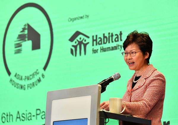 行政長官林鄭月娥昨日出席第六屆亞太區房屋論壇并致辭。政府新聞處