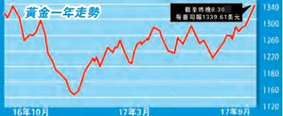 朝鮮半島局勢持續緊張加上美元仍處弱勢,使金價節節上升,迫淡友補倉,走勢有機會上試2016年7月的高位每盎司1375.1美元或1400美元關口;而港股今年已經連升8個月,升幅達5970點,約27%。
