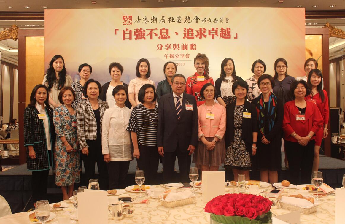 【香港商報网訊】記者曾美玲報道:香港潮屬社團總會婦女委員會日前在港島香格里拉酒店舉辦主題為「自強不息追求卓越」的午餐分享會,邀請了食物及衛生局局長陳肇始及香港小交響樂團音樂總監葉詠詩擔任主講嘉賓,分享她們的成功經驗。