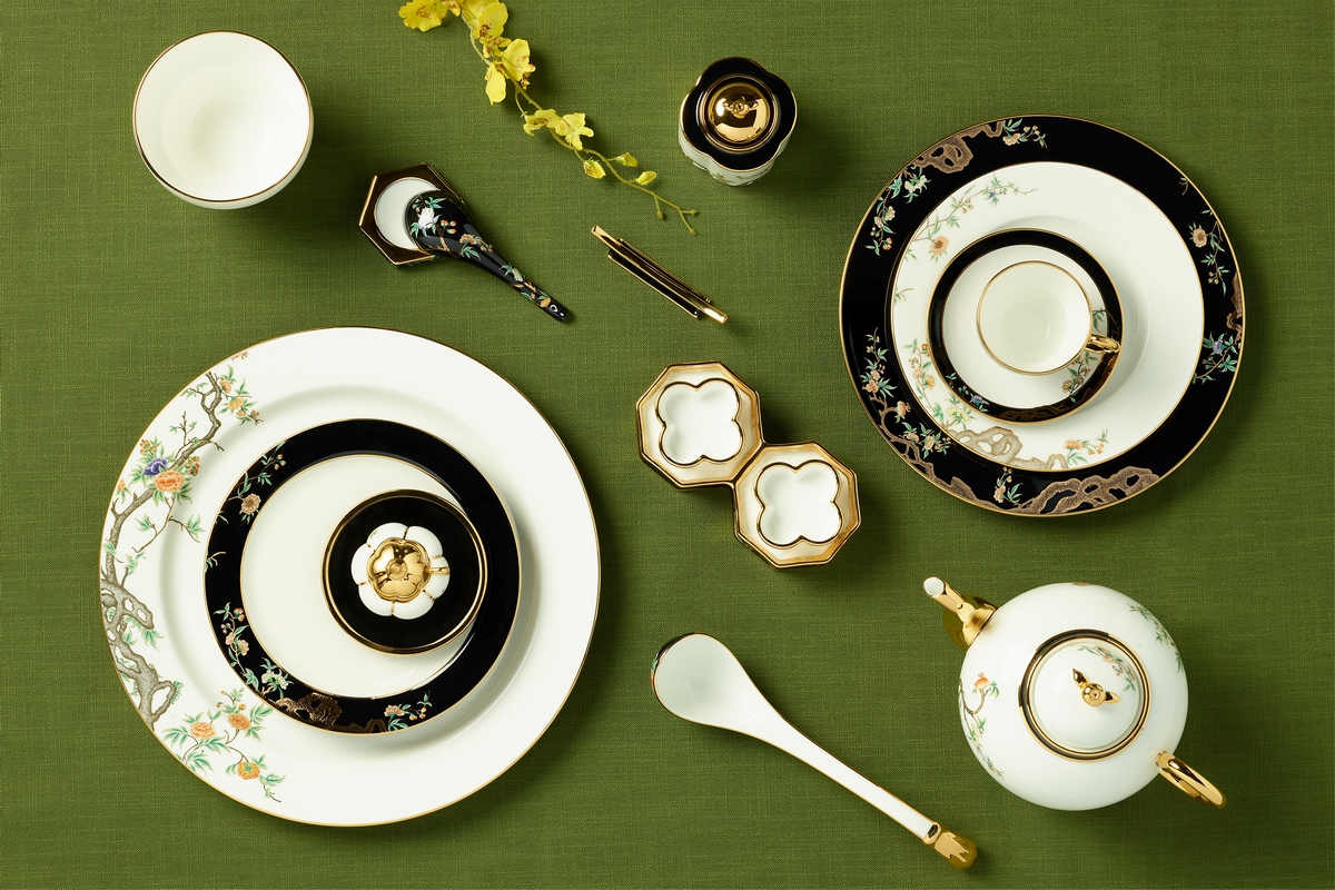 金磚國家與會領導人“夫人宴”宴會用瓷“夫人瓷·石榴家園”則極具女性色彩,產品以永恒的黑白經典為主色調,還原了中國傳統的白牆黑瓦生活場景,壺蓋提揪是吉祥的石榴,外觀主畫面用了大量石榴花,傳遞了世界團結、家庭和睦、富貴吉祥、和諧安康的美好祝願,讓全世界人民感受到“幸福生長在黑白之間”。