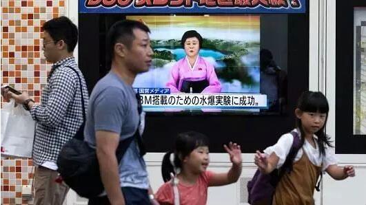 ▲9月3日,东京街头,民众从播放朝鲜进行核试验的电子屏幕前路过。(美国CNBC网站)