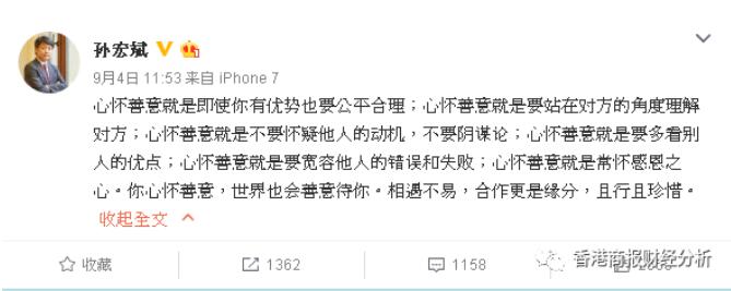 自今年年初融创150亿入股乐视以来,孙老板(孙宏斌)和贾布斯(贾跃亭)的一举一动备受世人关注。就在最近,我们孙老板在融创记者会上为乐视潸然落泪之后,回家更是发了微博,用了六个排比句和“相遇不易,且行且珍惜”排除众议、隔空力挺贾跃亭。