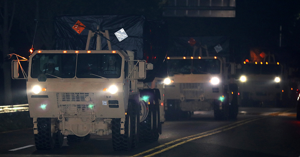 7日清晨,美韓兩國軍方將薩德反導系統剩餘4部導彈發射車及相關物資,運入韓國慶尚北道星州美軍薩德基地。