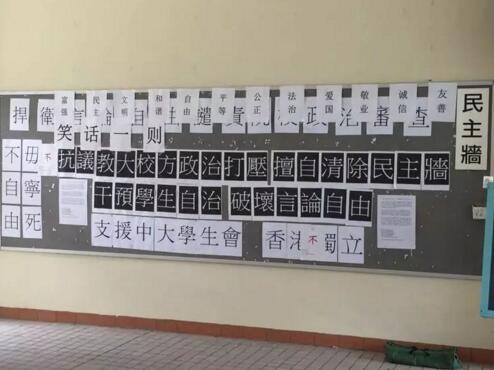 此外,港中大学生会还占有着学校内的舆论资源。张贴海报的民主墙,以及文化广场等公共空间,也由学生会负责管理。此次的“港独”海报,虽然不能确定是否由学生会张贴,但据港中大同学表示,在管理过程中,学生会带有明显的倾向性。