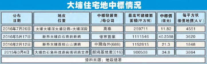 美聯測量師行董事林子彬則認為,是次截標的地皮位處大埔區豪宅地段,以低密度發展為主,由於項目規模較細,投資額有限,因此吸引多家中小型發展商參與競投,入標反應不俗及合市場預期,項目估值約3.52億元,樓面尺價約6000元。
