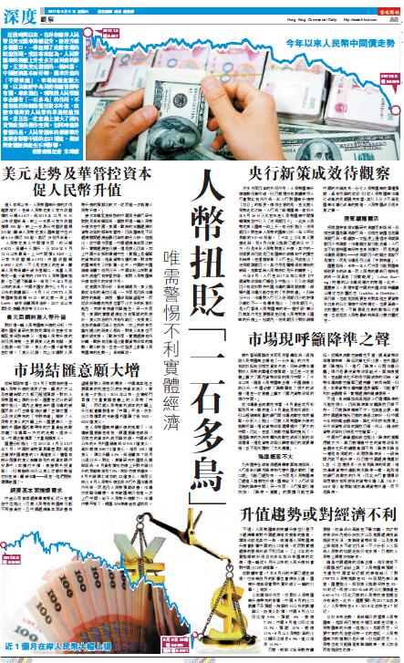 前外管局國際收支司司長管濤認為,現階段人民幣匯率企穩有「一石多鳥」的作用:有助於抑制恐慌性資本外流,同時改變市場對於人民幣的單邊貶值預期,并且在一定意義上擴大了國內貨幣政策的操作空間。「今年以來,隨著人民幣匯率企穩,外匯儲備止跌回升,外匯占款下降勢頭有了很大的改善,這在一定意義上擴大了國內貨幣政策的操作空間。」