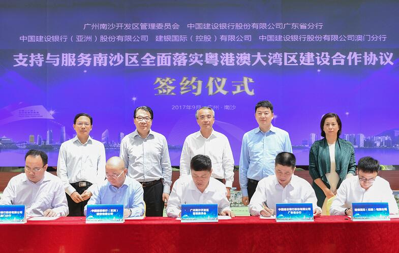 按照協議內容,建行粵港澳三地四機構將在未來五年,為南沙區落實粵港澳大灣區建設提供不少於1000億元的授信支持。