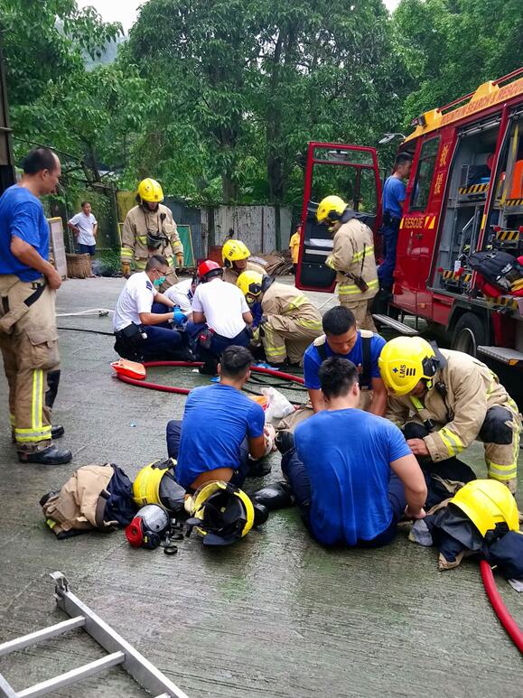 新界南消防區長梁國柱表示,今次拯救行動派出5輛消防車及5輛救護車,54名消防及救援人員參與拯救。對於有消防員受傷,梁否認與裝備出現問題有關,指出4名入爐拯救的消防員均穿上全套保護衣物,因消防員要踏在灰燼內拯救,即使有灑水降溫,但爐內溫度估計亦有攝氏400至600度,而保護衣物可抵擋攝氏1000度高溫8秒,今次拯救行動則花3分鐘將女傷者救出。