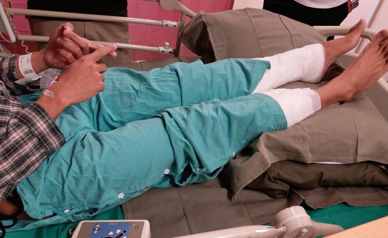 受伤消防员小腿灼伤留院。图片葛珮帆提供