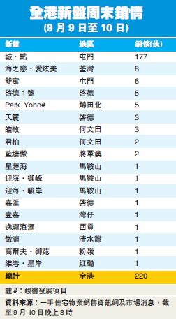 中原地產亞太區副主席兼住宅部總裁陳永杰表示,近日荃灣新盤熱銷,長沙灣上車盤亦銷情報捷,可見市場置業剛性需求龐大,相信本月新盤交投表現優於上月,估計本月一手成交量可高達2500宗。