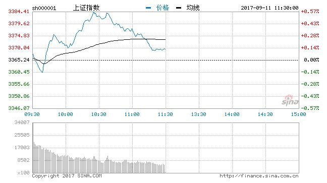 截止午間收盤,滬指漲0.13%,報3369.56點,深成指漲0.33%,報11006.62點。兩市成交金額共計3312.46億元。