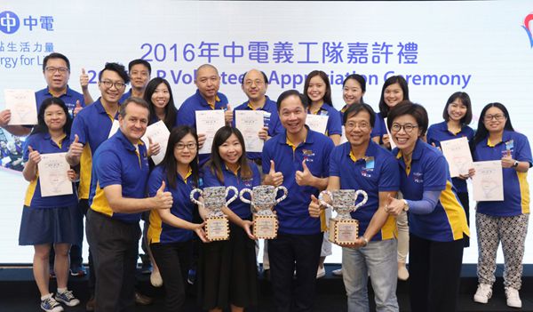 中電義工隊於1994年由一班前線員工自發組成,以本身的電能專業,為基層長者重鋪電線,發展至今已有超過1400名成員,包括現職員工、退休員工及員工的家人朋友,成為全港最具規模的企業義工隊之一。去年他們參與及舉辦了70項義工活動,服務時數超過11300小時,其中個人最高義工服務時數達183小時。