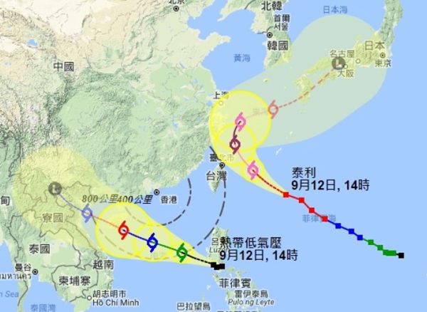 【香港商報网訊】記者周偉立報道:踏入9月,仍有「雙風暴」形成及吹向內地。颱風「泰利」已逐漸迫近台灣,預料會吹向華東;與此同時,位於菲律賓附近的低壓區已增強為熱帶低氣壓。天文台預料此熱帶低氣壓將增強為熱帶風暴,成為今年第19號颱風「杜蘇芮」(Doksuri,意即禿鷲),並於今天闖入本港800公里範圍,不排除於明日(周四)增強為颱風,預測會吹向海南一帶,但對本港仍具一定威脅。