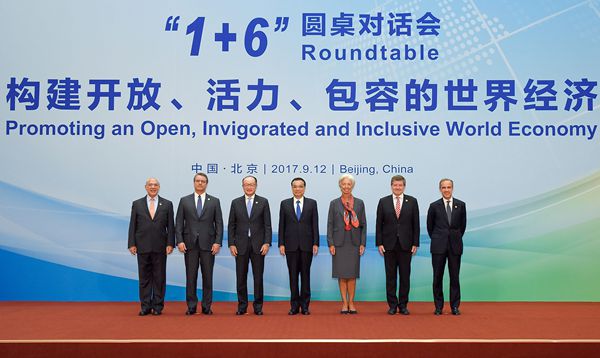 李克強同主要國際經濟金融機構負責人舉行「1+6」圓桌對話會。路透社