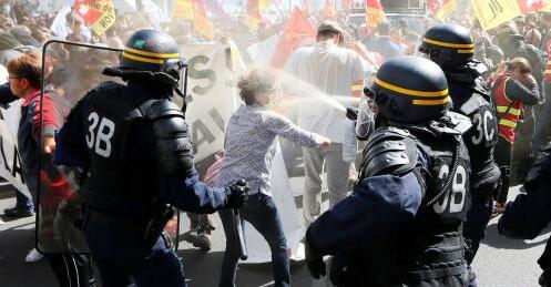 据法新社统计,12日下午,马赛、里尔、尼斯、卡昂等法国大中城市都出现几千甚至上万人的集会与示威。马赛示威者人数达到7400人,尼斯有4500人示威。法国警方称,巴黎的示威者约为2.4万人,示威路线从巴士底广场直到意大利广场。现场图片可以看到各种激烈的口号,如“绝不许碰劳工权利!”“马克龙滚蛋,懒人们已上街!”等。巴黎有示威者向警方投掷石头,警方使用催泪瓦斯和高压水枪还击,还有蒙面示威者和警察发生肢体冲突。报道还称,因为罢工,尼斯出现了自2006以来来首次没有任何公交运行的局面,而巴黎公交除了郊区快线地铁有约40%的罢工率外,尚属正常。