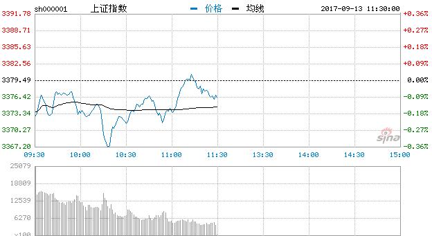 新浪財經訊 9月13日消息,滬指早盤小幅低開後維持窄幅震蕩走勢,波動不超過20點,創指相對較弱,三大股指成交量均明顯萎縮。蘋果如期發布新品,利好落地概念股應聲而跌。盤中偏防禦性的白酒板塊異動拉升,領漲兩市,此外無明顯強勢板塊。截止上午收盤,滬指報3376.39,跌0.09%,深指報11047.67,漲0.04%,創指報1879.60,跌0.26%。