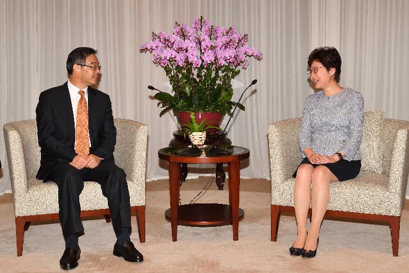 行政长官林郑月娥(右)今日(九月十四日)上午在行政长官办公室与国家首席大法官、最高人民法院院长周强(左)会面。