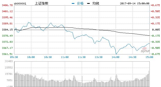據新浪財經,9月14日消息,早盤券商股異動拉升,滬指兩度沖高逼近3400點關口並創下階段新高,但臨近上午收盤,三大股指均出現跳水。午後隨著資源股下挫,股指持續走弱,滬指接連跌破5、10日均線,尾盤有所回升。截止收盤,滬指報3371.43,跌0.38%;深成指報11070.49,跌0.19%;創指報1879.25,跌0.49%。