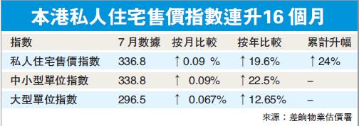 稍早,摩根士丹利發布報告認為,本港樓價增速已於6月份見頂,當時私人住宅售價指數為336.5,而7月份該數據為336.8,漲不動迹象已現。大摩預計,未來本港樓價上升速度將明顯放緩,到年底樓價增速會降到0。