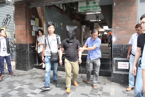 探員押解疑犯回尖沙咀賓館搜證。記者區天海攝