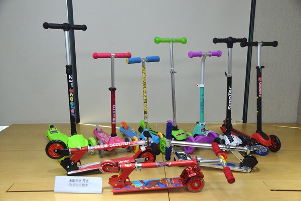 消委會早前測試了15款兒童滑板車,售價由198元至850元,包括4款兩輪車、11款三輪車,結果發現,有8款在性能及設計上未完全符合歐洲玩具安全標準的要求。測試中有5款樣本的手柄管強度未能達致標準要求,其中2款在測試后手柄管斷裂或移位、1款用作防止手柄管突然摺合的鎖定裝置損壞;亦有2款樣本於強度測試后,踏板或踏板底部的連接件斷裂。消委會指,無論手柄管斷裂移位或踏板損毀脫離,均可導致兒童在踏車時失去平衡,跌倒受傷。