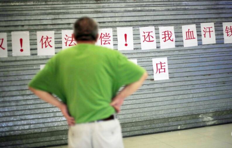 一名消费者站在门口无可奈何,有些人甚至还持有易买得的购物卡。