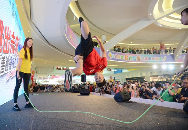 香港跳繩隊10分鐘內接力打出145個空翻打破世界紀錄。記者崔俊良攝