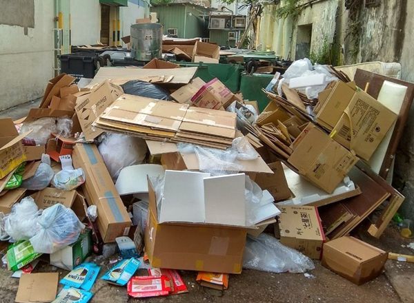 受停收廢紙影響,上水有后巷堆滿弃置紙皮。