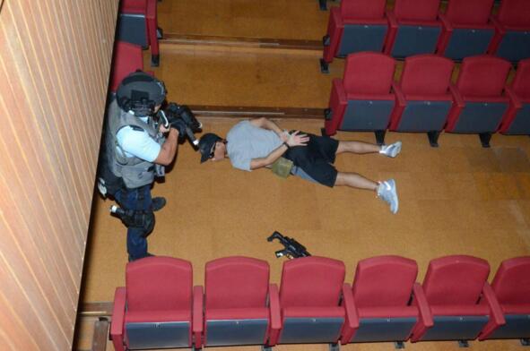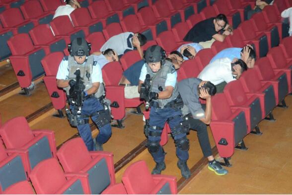 【橙訊】警方今日凌晨出動近200名警員,包括反恐特勤隊(CTRU)進行反恐演習。在中環香港大會堂,模擬7名恐怖分子在約70名觀眾的場地中,拒絕談判直接駁火,即場亂槍掃射,歷時逾1小時。