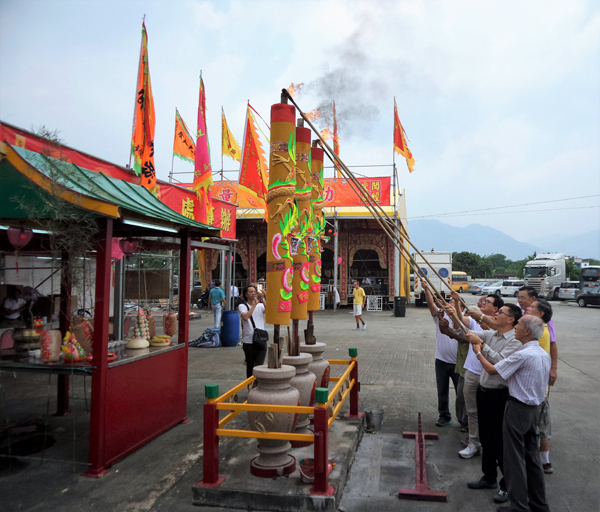 八鄉鄉紳、新界潮人總會主席及勝會各會長、總理於神位前上香拜神。 記者 周駿攝