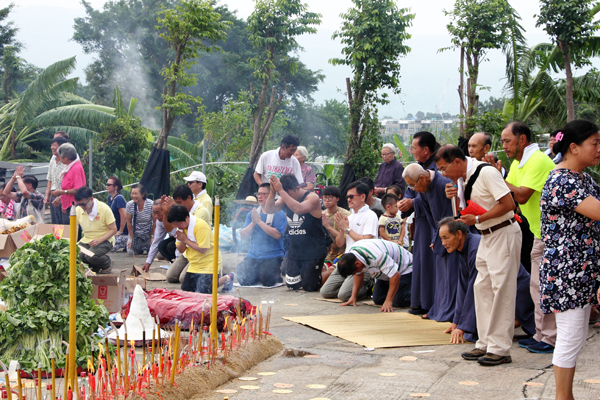 【香港商報網訊】記者周駿報道:新界原住居民保留着春秋二祭、天后寶誕等傳統文化活動,而生活在新界的潮僑亦承傳着盂蘭(鬼節)傳統文化。每年踏入農曆七月潮僑便舉辦盂蘭勝會,祭祖安撫孤魂,祈求神明保佑,亦是凝聚潮僑鄉情。新界西北部鄉村的大江埔及周邊散居一批潮僑,由1957年開始率先於新界舉辦盂蘭勝會,且風雨無阻,彰顯了潮僑的團結。丁酉年農曆七月初十至十二日(8月31至9月2日)一連3天,錦田八鄉大江埔籌善款70萬元舉辦第60屆盂蘭勝會,採用鋁合金(非竹枝)搭建神棚、戲棚,設壇建醮誦經、唱大戲,潮僑聚會,人神共樂,合境平安。
