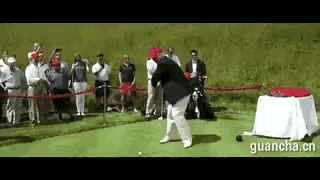 视频中,特朗普在高尔夫球场上转身挥动球棒的动作和2011年作为美国务卿的希拉里在登机时摔跤的镜头拼在一起。由于视频是经过编辑的,因此看起来就像特朗普用高尔夫球击中了希拉里。