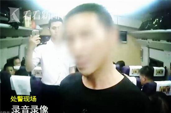 南京铁路公安处乘警支队民警蒋伟:“嫌疑人多次推搡我们的列车工作人员,甚至挥拳过去打我们列车长,列车长因为挨了打,情绪比较失控,一度控制不住已经哭起来了。”