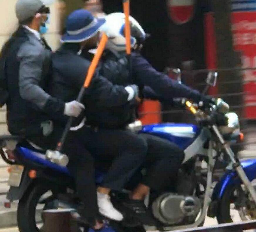 3人乘电单车离开。读者提供图片