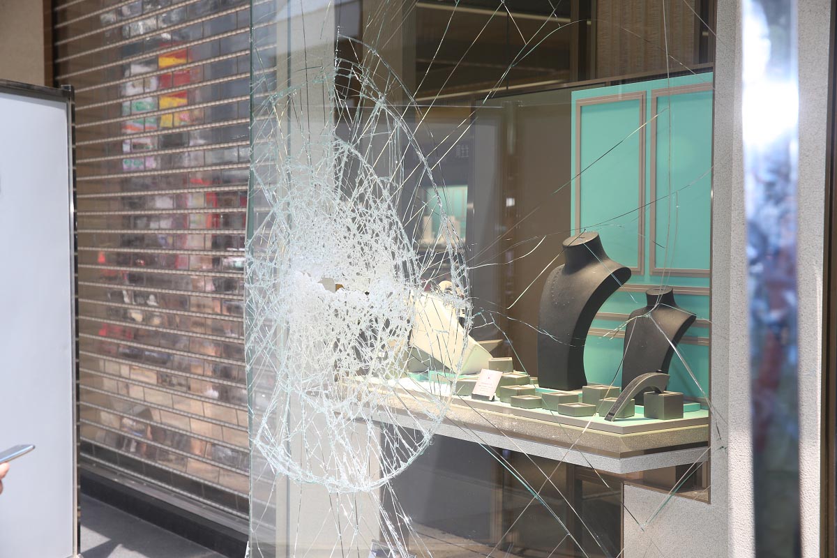 被砸毁的橱窗。