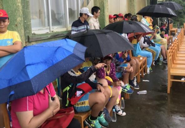 民众冒雨观看导弹演练。(图片来源:台媒)