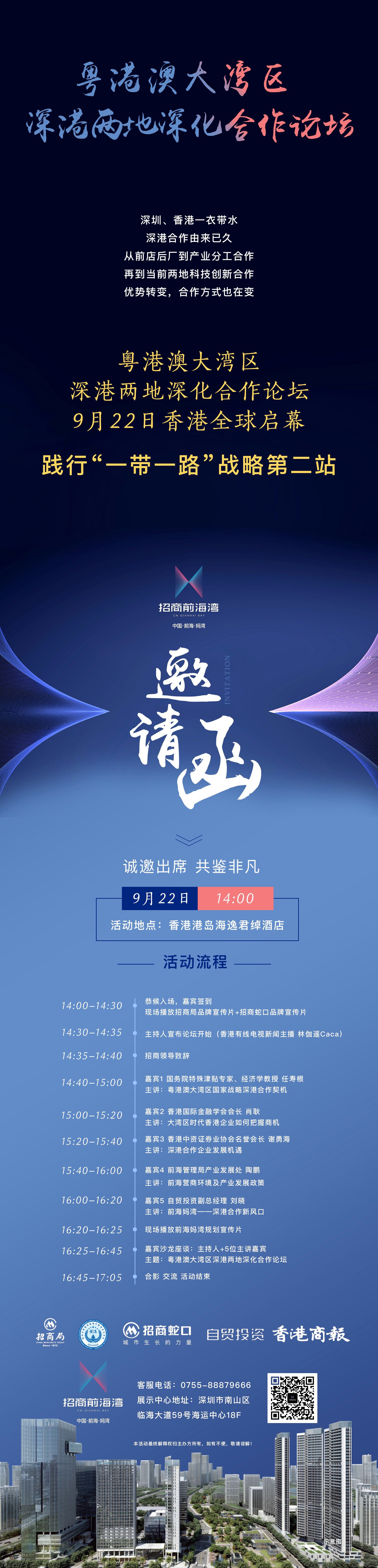 【香港商报网讯】9月22日,招商局蛇口工业区控股股份有限公司、深圳市前海蛇口自贸投资发展有限公司、香港商报联合主办的“粤港澳大湾区深港两地深化合作论坛”在港岛海逸君绰酒店隆重举行。香港各大商会领袖、港深两地企业家以及港深数十家媒体的倾情参与,本次论坛成为推进港深两地企业合作的业界盛事。