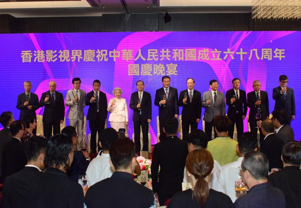 【香港商報網訊】香港影視界慶祝中華人民共和國成立68周年國慶晚宴昨晚在港舉行。中聯辦副主任楊健、基本法委員會副主任梁愛詩、中國電影基金會理事長張丕民等300多名業界和演藝界人士出席了活動。
