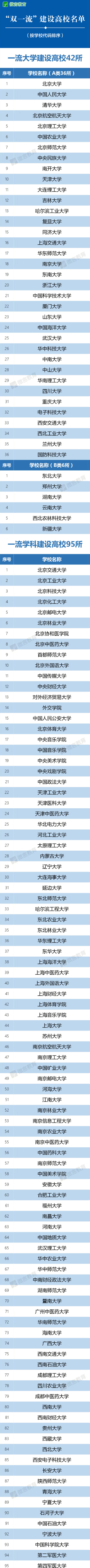 日前,教育部、财政部、国家发展改革委印发《关于公布世界一流大学和一流学科建设高校及建设学科名单的通知》,公布世界一流大学和一流学科(简称“双一流”)建设高校及建设学科名单。