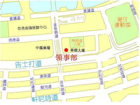 中国外交部驻香港特别行政区特派员公署领事部地址:香港湾仔港湾道26号华润大厦4楼。电话:(852)-34132403/34132404(星期一至星期五办公时间)