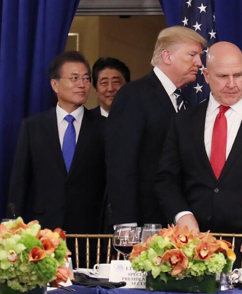 此次韩美元首会谈共进行40分钟。结束后,文在寅、特朗普与安倍晋三一同出席韩美日三国元首业务午宴。