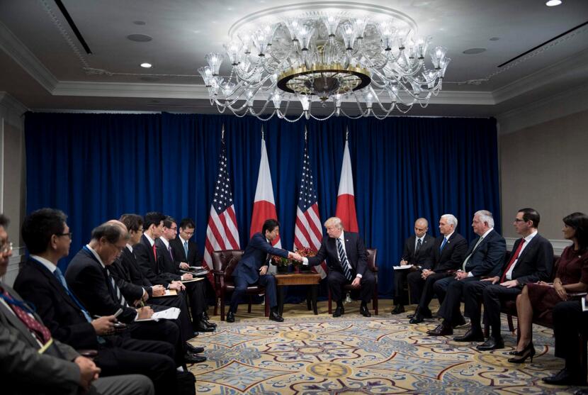 当地时间9月21日,美国纽约,联合国大会期间,美国总统特朗普与日本首相安倍晋三会面。