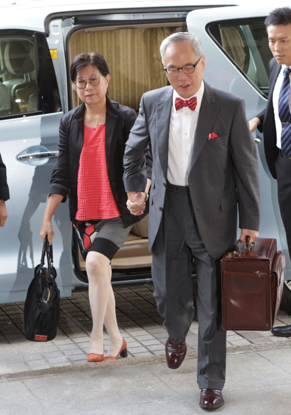 曾氏夫婦九時扺達法院。曾蔭荃由加拿大返港支持兄長。前特首辦兩名男女今早亦有到庭支持曾蔭權。