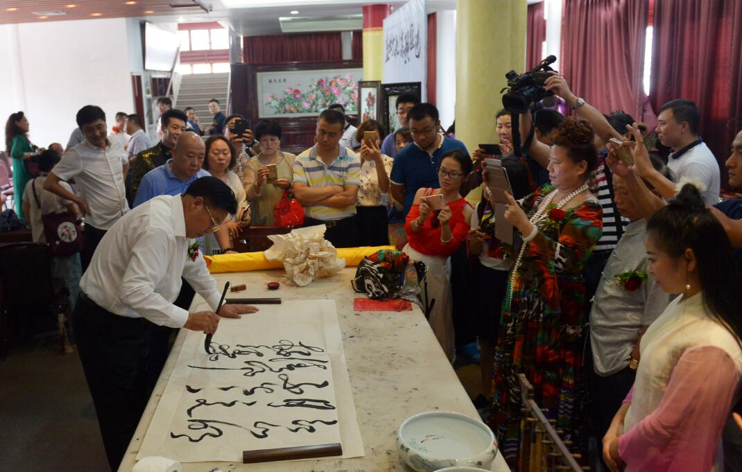 【香港商報網訊】記者朱開芝、通訊員、李昌戰、冼餘漢報道:日前,記者在深圳市龍崗區布吉街道舉行的王同山先生狂草書法立論《大草賦》收藏鑒賞會上了解到,中國書法家協會會員、書法立論《大草賦》作者、狂草(大草)書法家王同山先生將紮根鵬城創作,助力深圳文化建設。王同山有中國當代草聖、愛國詩人之稱。本次活動是王同山今年七月份繼深圳文博宮舉行作品品鑒收藏會後,第二次在深圳舉行書法品鑒活動。