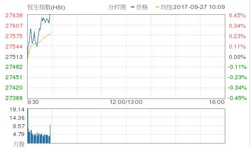 隔夜美股三大指數個別發展,美聯儲局主席耶倫暗示今年年底將再次加息,聯邦基金期貨顯示,交易員預計聯儲局在12月會議上加息的可能性為78%。期指結算前夕,市場觀望氣氛較濃厚。恒生指數今早低開0.04%,報27503.05點;國企指數低開0.1%,報10957.55點;紅籌指數高開0.18%,報4266.1點。大市成交額19.14億。