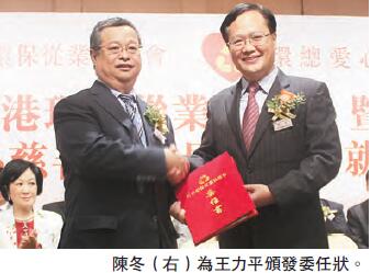 【香港商報网訊】記者曾美玲報道:香港環保從業員總會暨環總愛心慈善會日前假香港會展中心舉行首屆董事會就職典禮,中聯辦副主任陳冬、青年工作部部長陳林應邀主禮。王力平榮膺總會永遠會長,劉耀成任會長;劉央和陳紅天擔任慈善會主席。劉耀成表示,成立該會是志在做政府和業界的溝通橋梁,未來希望帶領業界發展事業,同心協力繼續為社會服務。