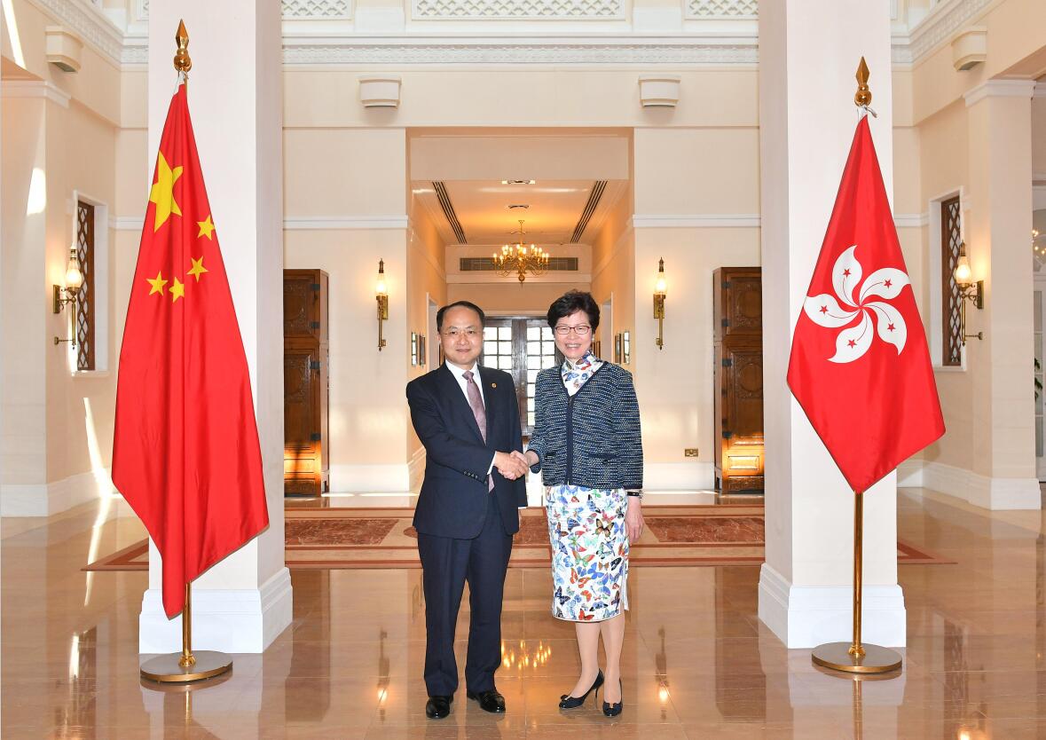 中聯辦主任王志民昨日到禮賓府拜會行政長官林鄭月娥。政府新闻处