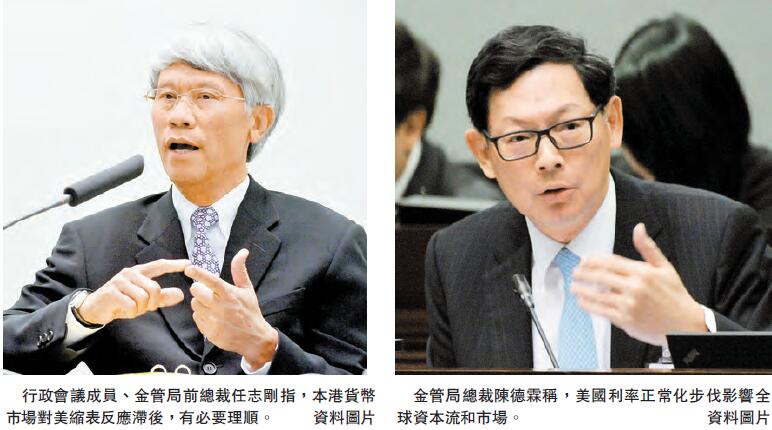 【香港商報网訊】記者吳天淇報道:面對美聯儲局下月即將落實「縮表」計劃,以及年底加息預期升溫,本港金管局近期在7.75和7.85兩個兌換保證匯率範圍內,增發外匯基金票據擬穩定港美息差。昨日,行政會議成員、金管局前總裁任志剛發表網誌指,美國貨幣政策有變動,惟本港貨幣市場反應看似滯后,因而監管機構或有出手理順的必要,以管理好市場預期,減低有關風險。