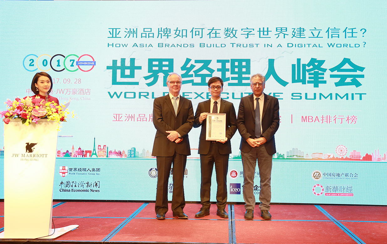 商浩帆接受2017年“亚洲品牌500强”奖牌。