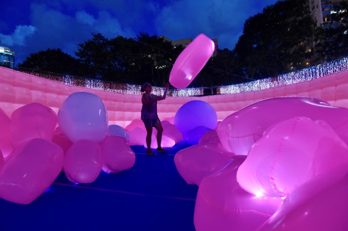 昨中秋夜,偶有微雨,天上多雲,明月時隱時現。大批市民晚飯過后,扶老攜幼,出外賞月、玩燈籠、看綵燈;維園綵燈會內的「尋月」光影裝置大受歡迎,不少市民於氣球「波波池」內尋找象徵「圓月」的氣球,拍打時更會發亮,小朋友們樂在其中。另外,民政事務局局長劉江華、立法會議員馬逢國和康文署署長李美嫦等出席市區中秋綵燈會開幕禮。劉江華表示,中秋是一家團聚,樂享天倫的日子,今年適逢回歸20周年,他感謝內地文化部門支持,派出單位來港示範歌舞和手工藝,并祝願市民中秋節快樂,身體健康。